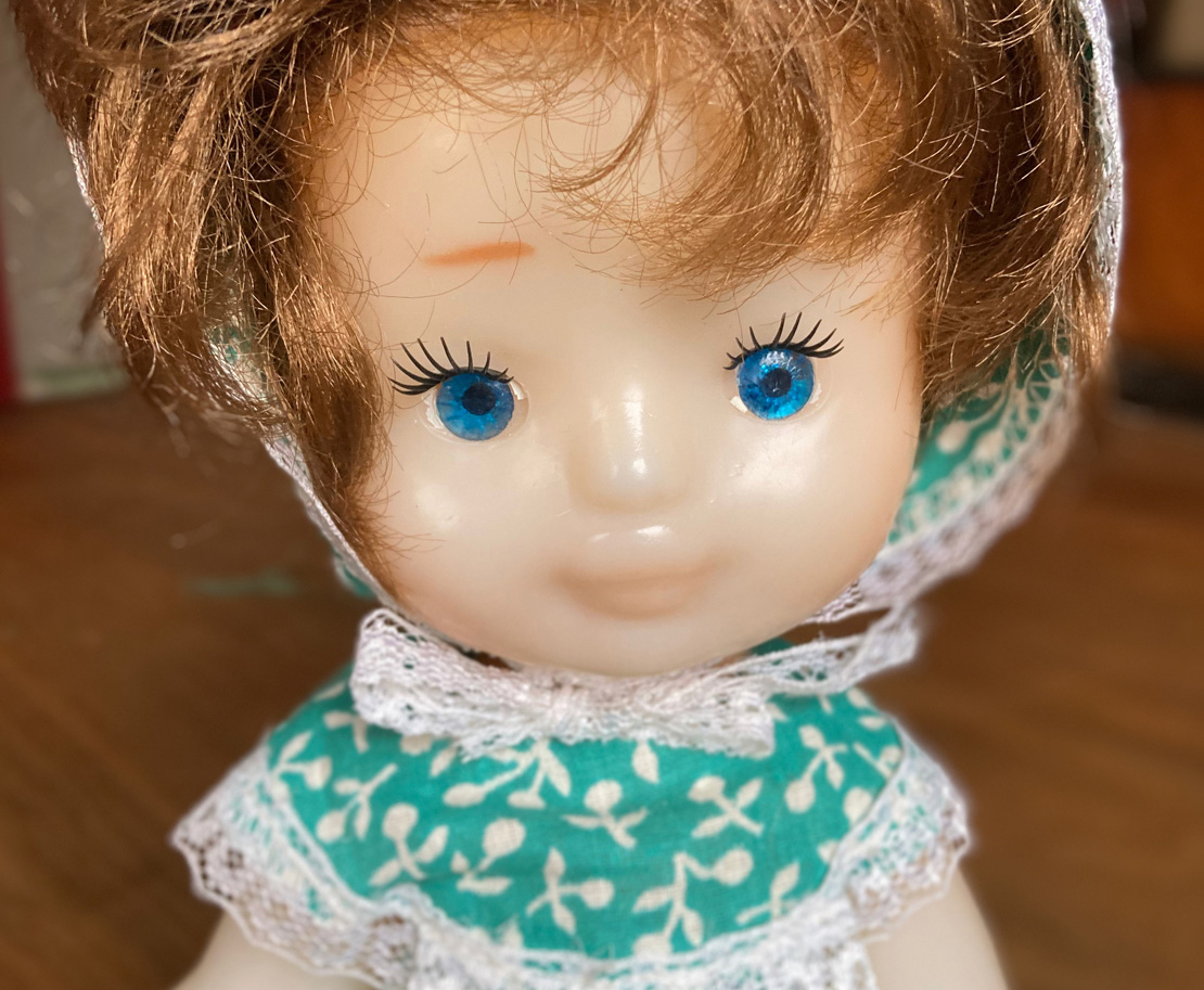 Es ist eine Puppe mit wachsweißem Gesicht, in grünem Häubchen und Minikleid. Ein russisches Grünkäppchen, ein zartes Geschöpf, über das ich mich ehrlich gesagt nicht so recht freute, denn ich liebte Puppen mit dunkler Hautfarbe, Negerpuppen genannt, wobei sich niemand etwas Abwertendes dachte.