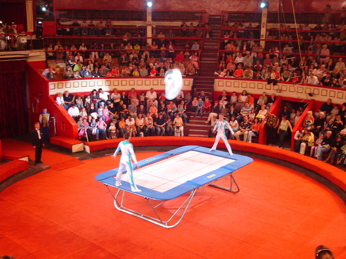 Clowns, Akrobaten, eine Nummer mit Riesenpudeln. Ein weiblicher Contortionist, im Silberanzug wie ein Lurch. Vika will sich die ganze Zeit über einen Luftballon krallen, der vor uns an einem leeren Sitz lehnt, aber einem anderen Kind gehört. Als ich sie deswegen auf deutsch „ausschimpfe“, schauen mich die Kids entgeistert an. War das Deutsch?, fragt Vadik..